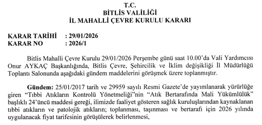 Bitlis Mahalli Çevre Kurulu 29/01/2026 Perşembe günü saat 10.00'da Vali Yardımcısı Onur AYKAÇ Başkanlığında, Bitlis Çevre, Şehircilik ve İklim değişikliği İl Müdürlüğü Toplantı Sa[...]